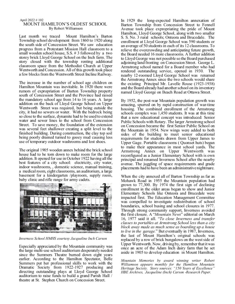 In a tight-knit Concession Street community like Mount Hamilton, one can expect to find a storied past of dedication. Naturally that may be found in association with a former neighborhood school like Inverness just as we have seen more recently in the struggle to save Sherwood Secondary School. …