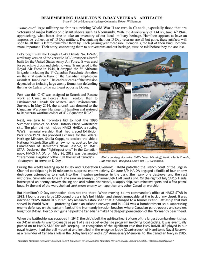 REMEMBERING HAMILTON’S D-DAY VETERAN ARTIFACTS– June 2022