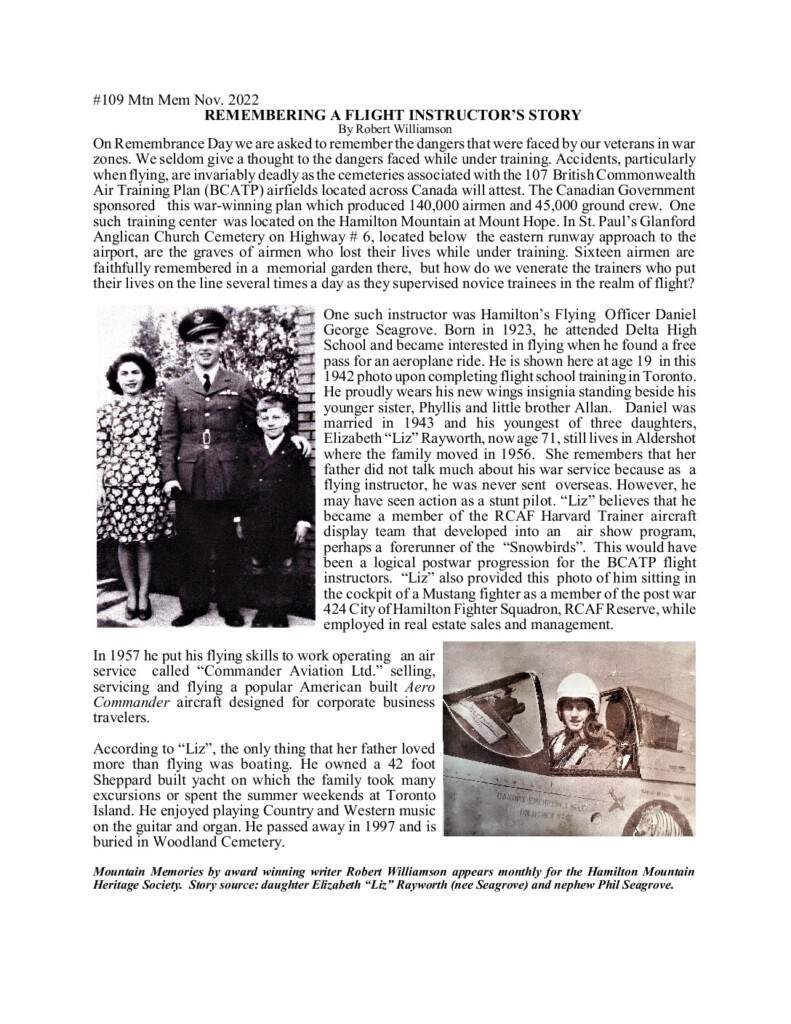 On Remembrance Day we are asked to remember the dangers that were faced by our veterans in war zones. We seldom give a thought to the dangers faced while under training. Accidents, particularly when flying, are invariably deadly as the cemeteries associated with the 107 British Commonwealth Air Training Plan (BCATP) airfields located across Canada will attest. …