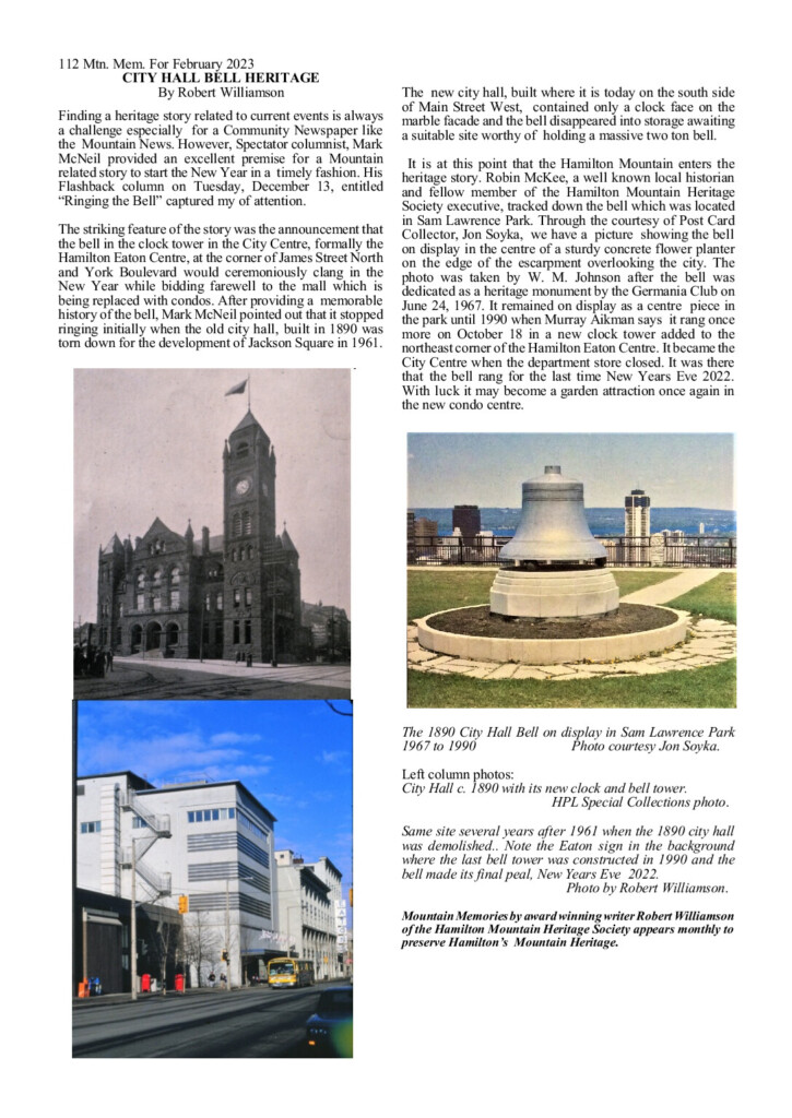 This series of articles relating to people, places and events of historical significance in the Hamilton community are written on behalf of the Hamilton Mountain Heritage Society by Hamilton Historian Robert Williamson. They are presented here with the permission of the author. This is an ongoing series of articles and new entries are being added at regular intervals. Anyone who wishes to contact Mr. Williamson directly concerning these articles may do so via e-mail at robertwilliamson1025@outlook.com.