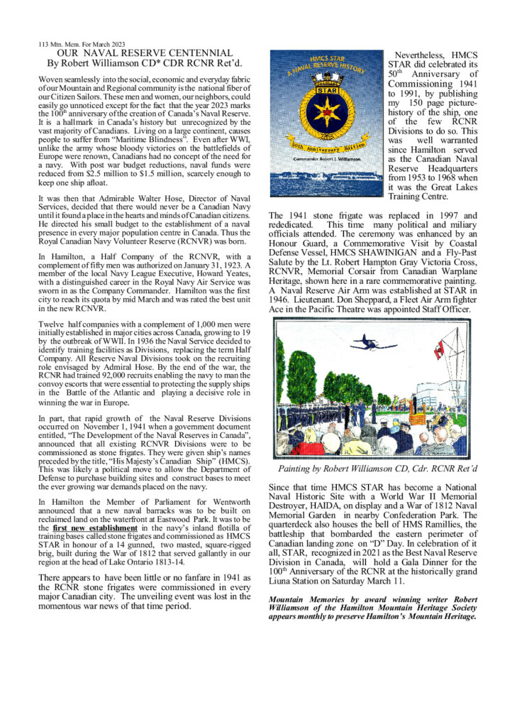 OUR NAVAL RESERVE CENTENNIAL – March 2023