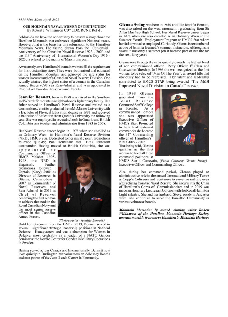 OUR MOUNTAIN NAVAL WOMEN OF DISTINCTION – April 2023