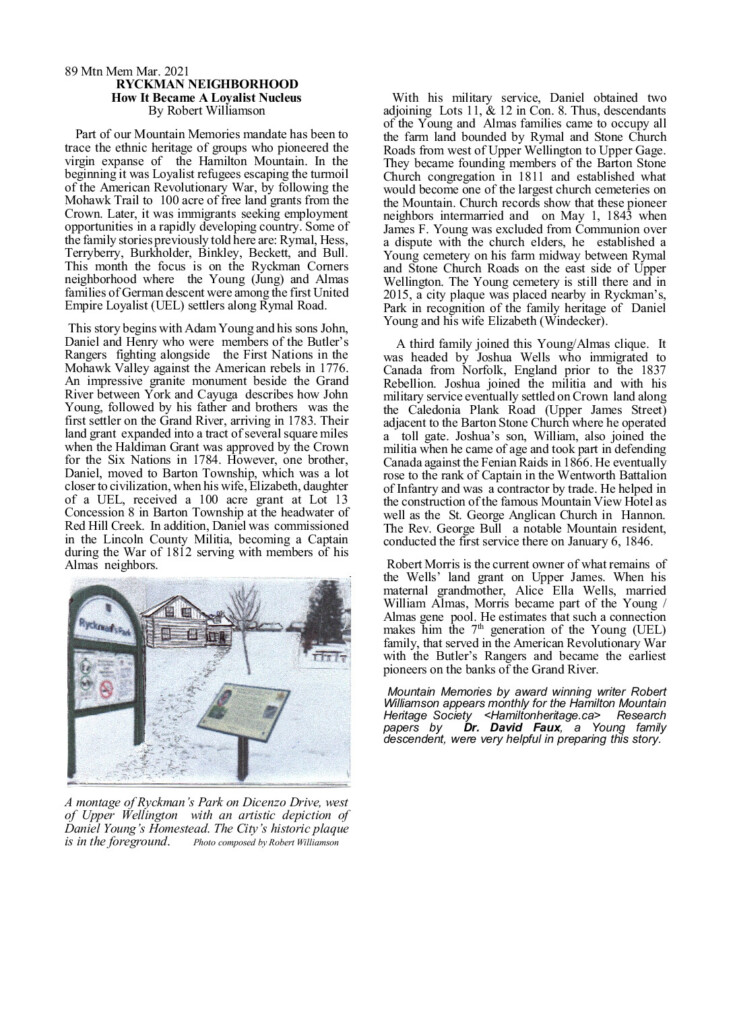 RYCKMAN NEIGHBORHOOD How It Became A Loyalist Nucleus – March 2021