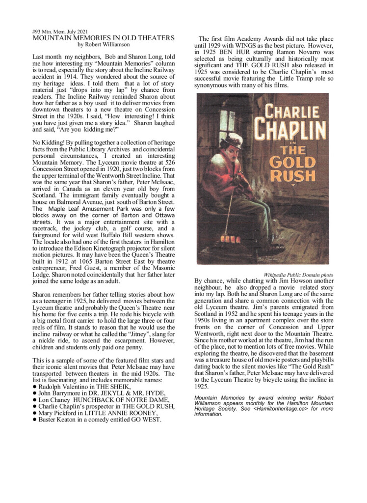 MOUNTAIN MEMORIES IN OLD THEATERS – July 2021